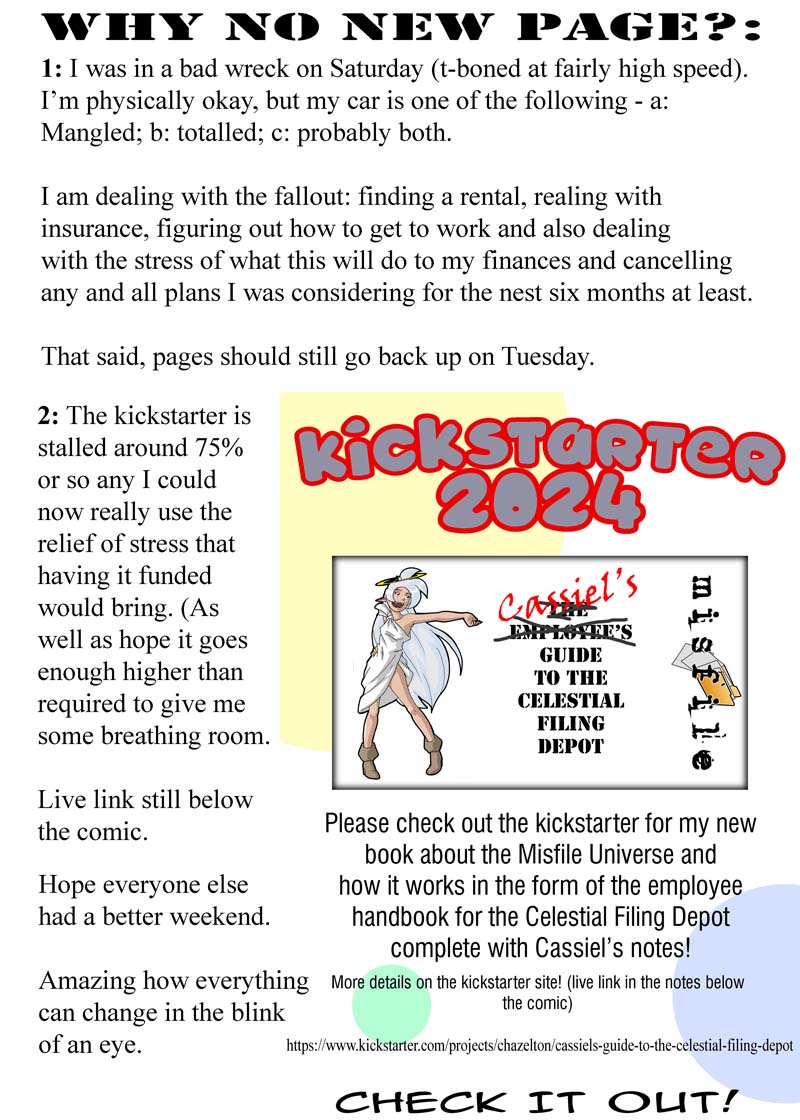 I need motivation to start a project. I’m trying to out together a Kickstarter for “Cassiel’s Guide to the Celestial Filing Depot”. It would be a what’s what and who’s who of the misfile universe from both the authorities in heaven plus Cassiel’s notes as the new head of oversight with picture, maps, diagrams, etc.